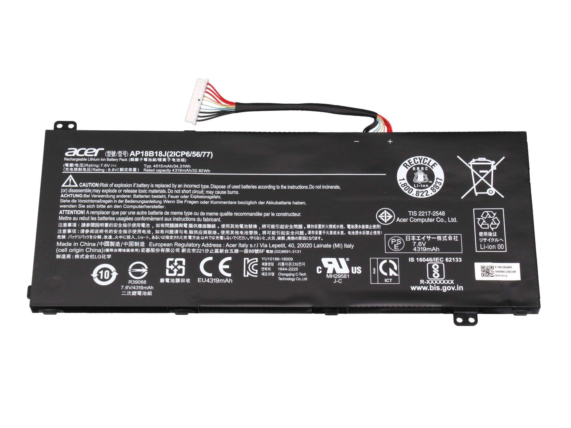 Elektrische Speicherkapazität 4319 mAh