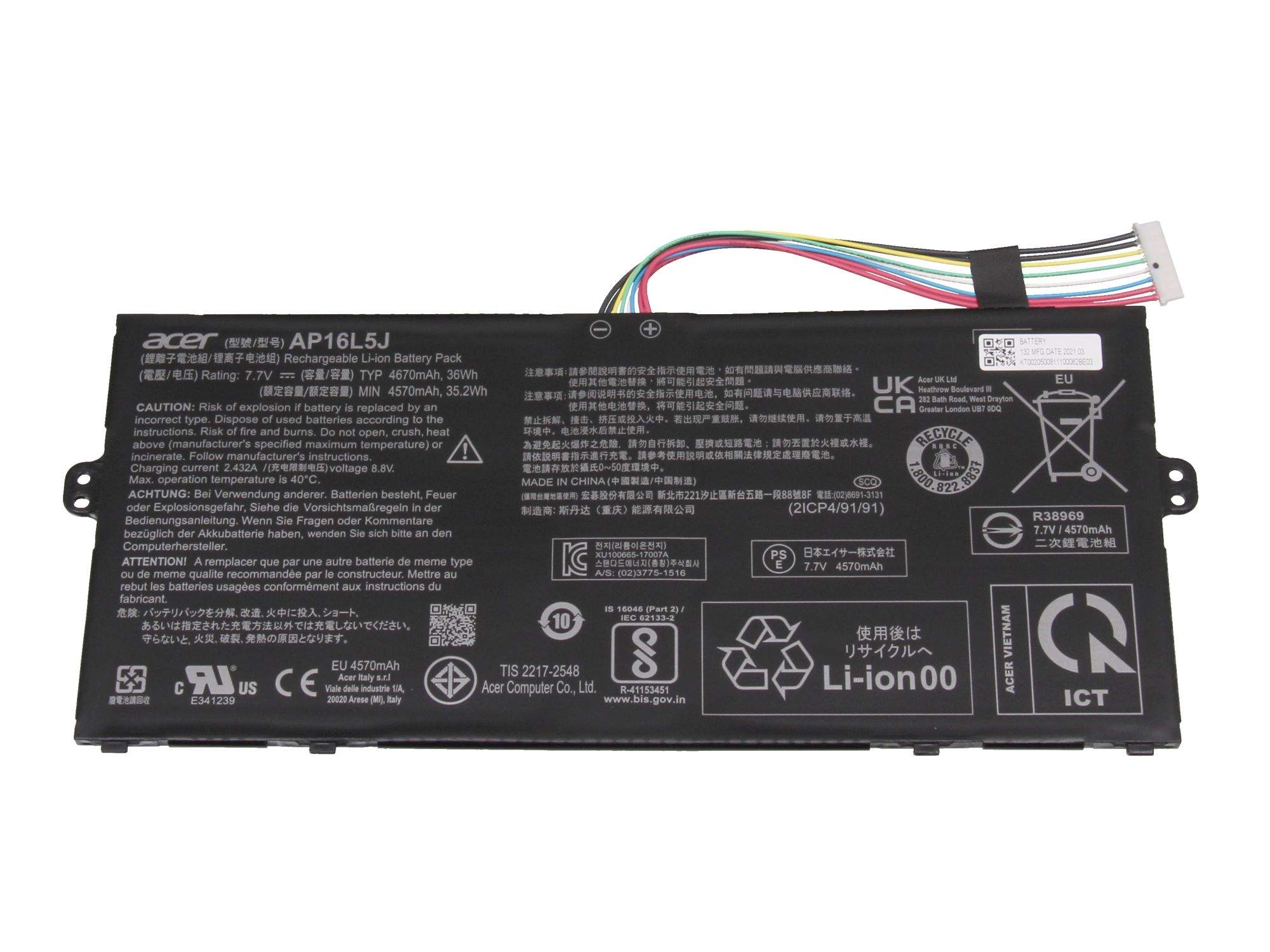 Acer Battery 2CELL AP16L - Akku - 4.670 mAh