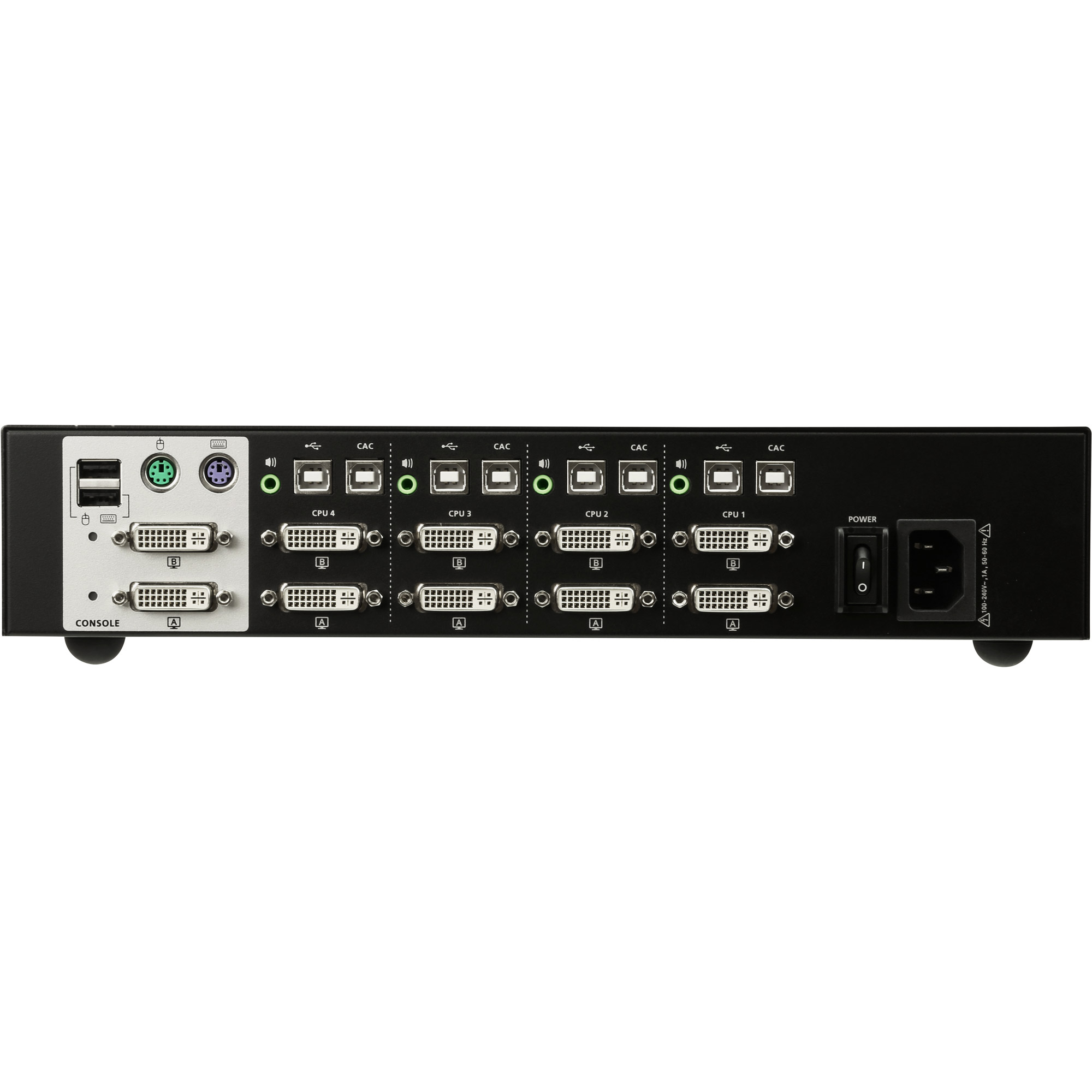 Farbe Schwarz Universelle Schnittstellen USB Video ein und Ausgänge Video-Ausgang Video/Netzwerk-Anschlüsse DVI Umschalter KVM-Umschalter Portzahl 4-Port Abmessungen / Gewicht
