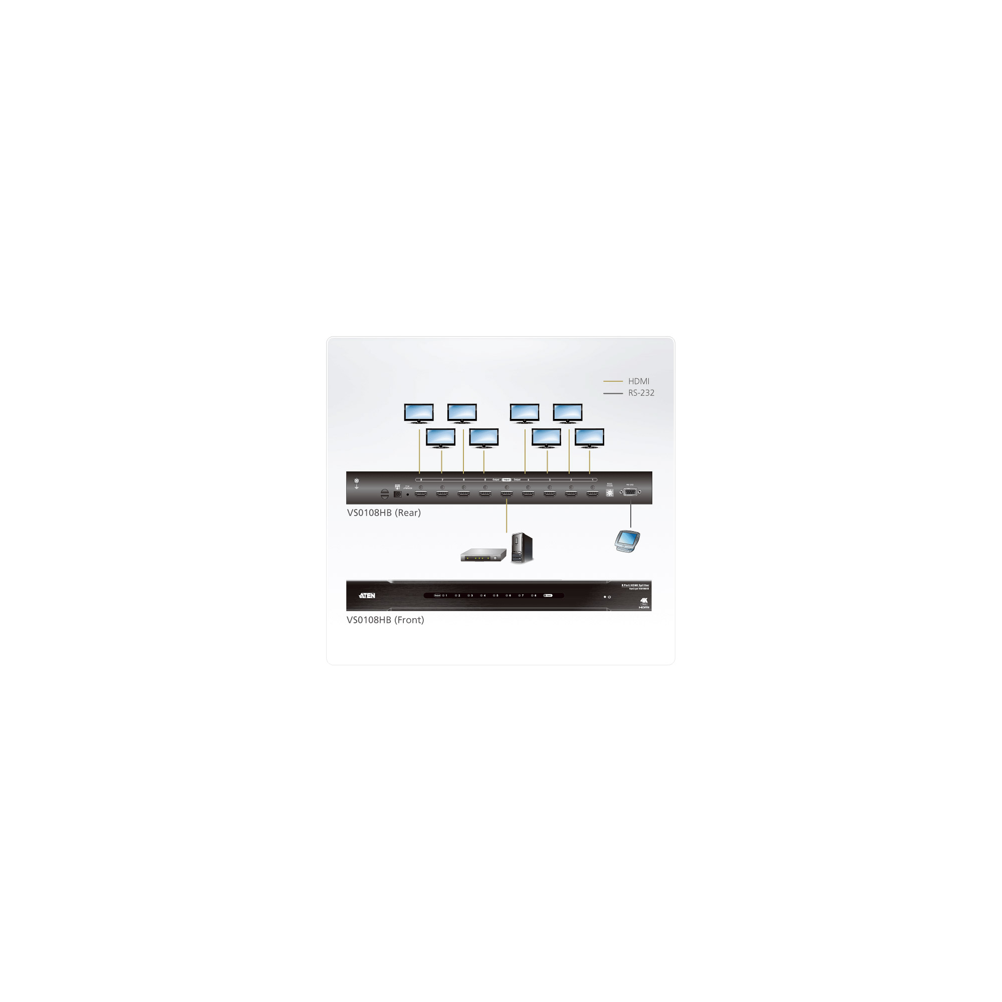 Farbe Schwarz; Farbig Stückzahl 3er Universelle Schnittstellen RS-232 Video ein und Ausgänge Video-Eingang; Video-Ausgang Video/Netzwerk-Anschlüsse HDMI Umschalter KVM-Umschalter Portzahl 8-Port Abmessungen / Gewicht