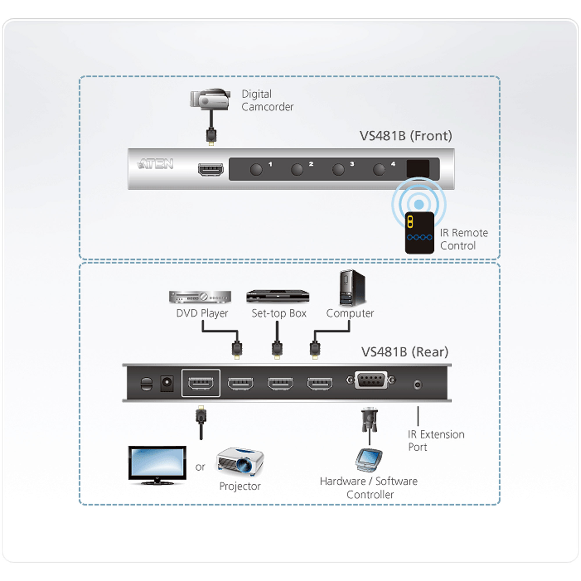 Modellbezeichnung VS481B Farbe Farbig Universelle Schnittstellen RS-232 Video ein und Ausgänge Video-Eingang; Video-Ausgang Video/Netzwerk-Anschlüsse HDMI Umschalter KVM-Umschalter Portzahl 4-Port Abmessungen / Gewicht