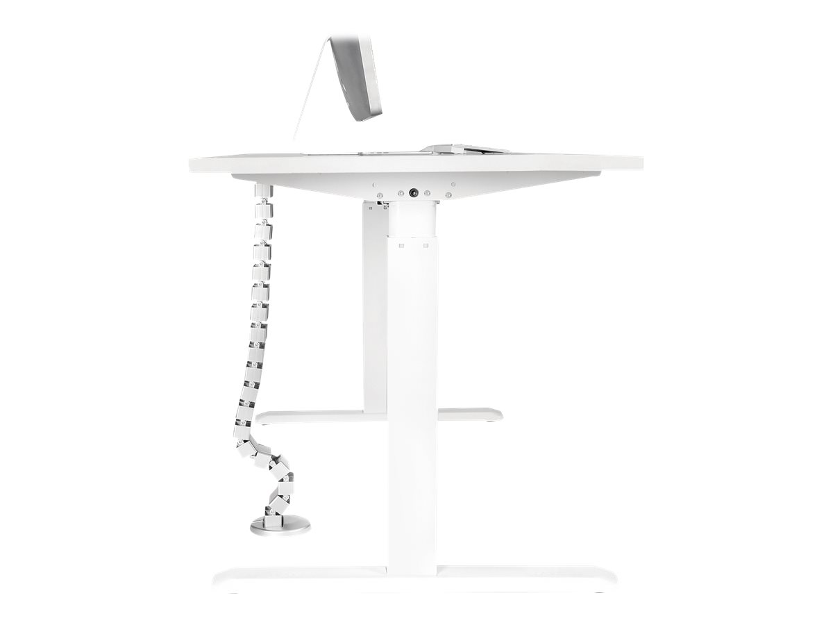 Die flexible Kabelführung von DIGITUS® stellt die ideale Lösung nicht nur für höhenverstellbare Tische dar. Die einzelnen Glieder lassen sich nach Belieben entfernen oder hinzufügen, somit können Sie die Länge individuell der maximalen Tischhöhe anpassen. Beim Absenken eines höhenverstellbaren Tisches legt sich die Kabelführung ordentlich zusammen ohne zu verheddern oder Kabelsalat zu verursachen, dabei hält der beschwerte Metallfuß die Kabelführung stabil am Boden. Die Befestigung am Tisch erfolgt über den Winkel, der sich am oberen Ende der Kabelschlange befindet. Sie können insgesamt eine maximale Tischhöhe von bis zu 130 cm realisieren. Innerhalb der Kabelführung stehen 4 separate Kanäle zur Verfügung, um Kabel aller Art ordentlich und sauber zu verlegen. Jedes Modul verfügt über eine flexible Öffnung zum leichten Ein- und Ausführen der Kabel. Schaffen Sie Ordnung unter Ihrem Schreibtisch!