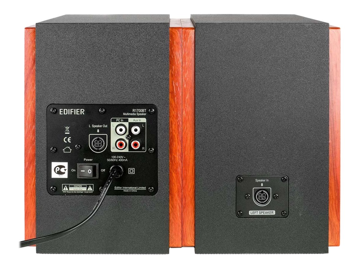 Modellbezeichnung Studio R1700BT Farbe Braun Material Holz Musikleistung / -belastbarkeit Standard 66 W Impedanz 6 Ohm Anschlußkabel 5 m Gewicht 6600 g Universelle Schnittstellen Bluetooth Kabellos-Technologie Kabellos Diverses Zubehör Fernbedienung Auslieferungsausstattung (Bulk/Retail) Retail Analoge Audio-Formate Stereo Typ Lautsprecher Abmessungen / Gewicht