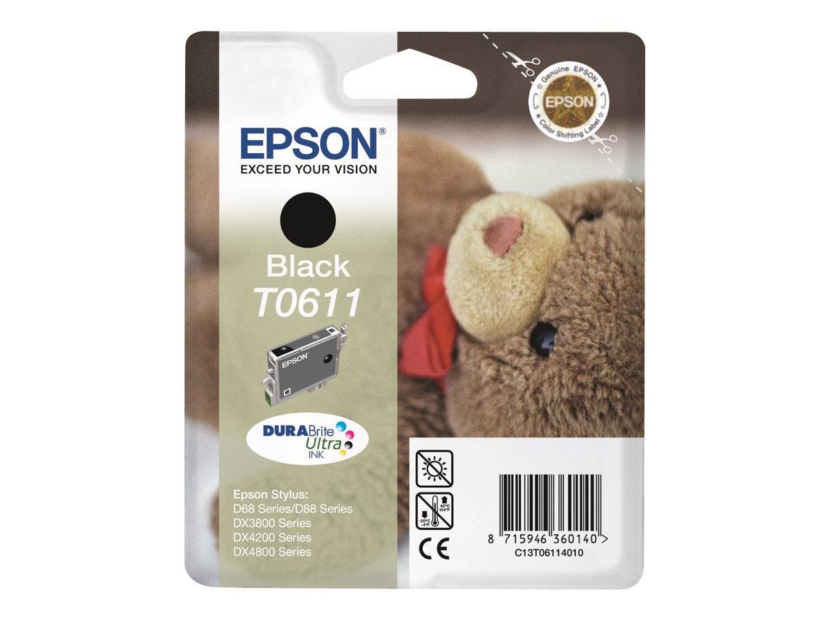 Modellbezeichnung T0611 Stückzahl 1er Kompatible Modelle Epson Stylus D68 Photo Edition, D88, D88+, DX3800, DX3850, DX3850+, DX4200, DX4250, DX4800, DX4850, DX4850+ Füllvolumen 8 ml Verpackung (z.B. Blister) Blisterverpackung Artikelzustand Original Typ Tintenpatrone Druckfarbe Schwarz Reichweite 250 Seiten Abmessungen / Gewicht
