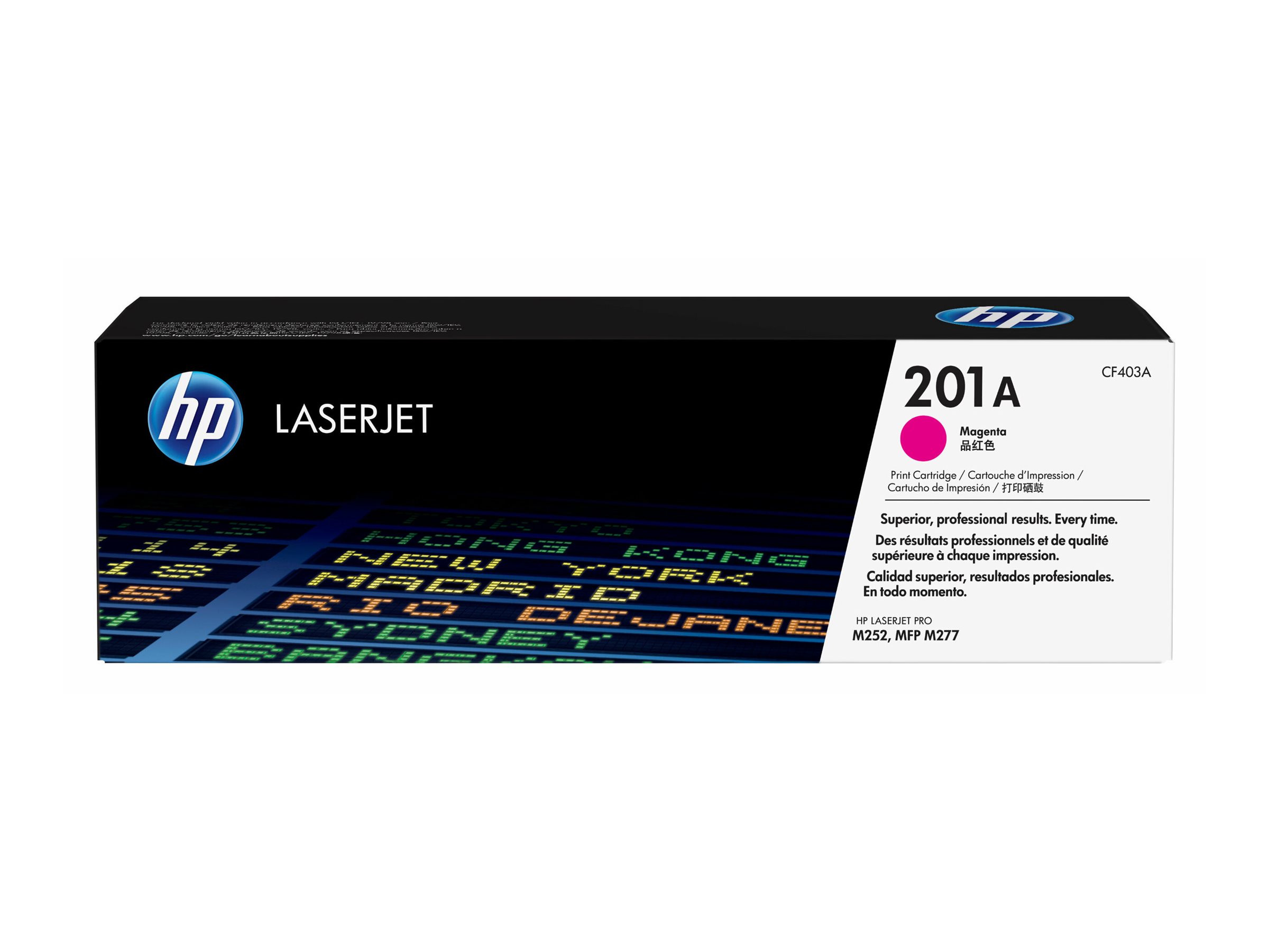 Modellbezeichnung 201A Kompatible Modelle HP Color LaserJet Pro M252dw HP Color LaserJet Pro M252n HP Color LaserJet Pro M274n HP Color LaserJet Pro M277dw HP Color LaserJet Pro M277n Artikelzustand Original Typ Tonereinheit Druckfarbe Magenta Reichweite 1400 Seiten Abmessungen / Gewicht