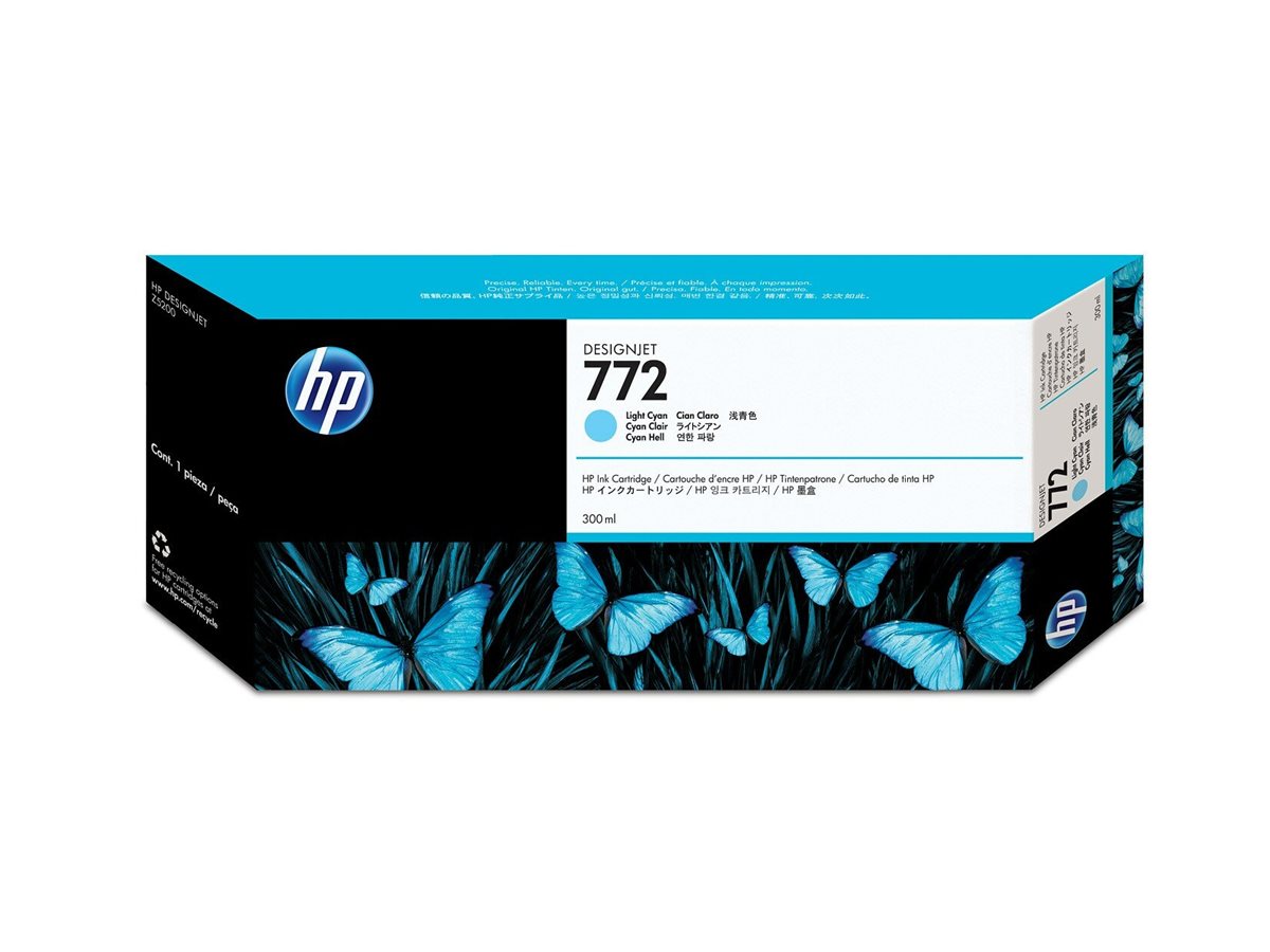 Modellbezeichnung 772 Stückzahl 1er Kompatible Modelle Designjet Z5200 Füllvolumen 300 ml Artikelzustand Original Typ Tintenpatrone Druckfarbe Hell- / PhotoCyan Logistische Daten
