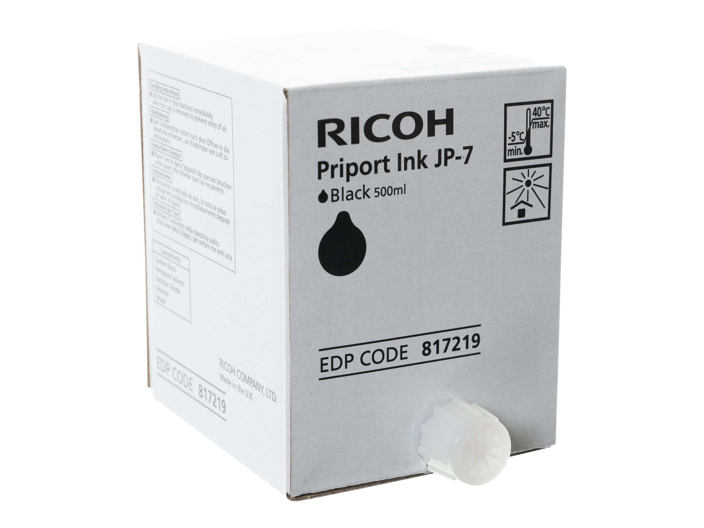 Modellbezeichnung JP7 Füllvolumen 500 ml Artikelzustand Original Typ Tintenpatrone Druckfarbe Schwarz Reichweite 500 Seiten Logistische Daten